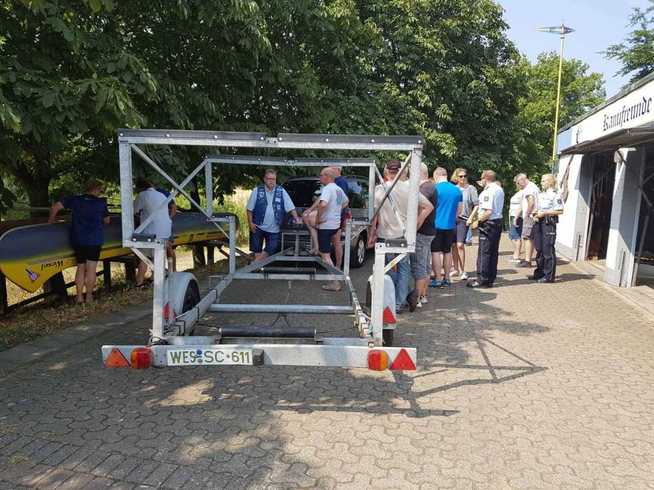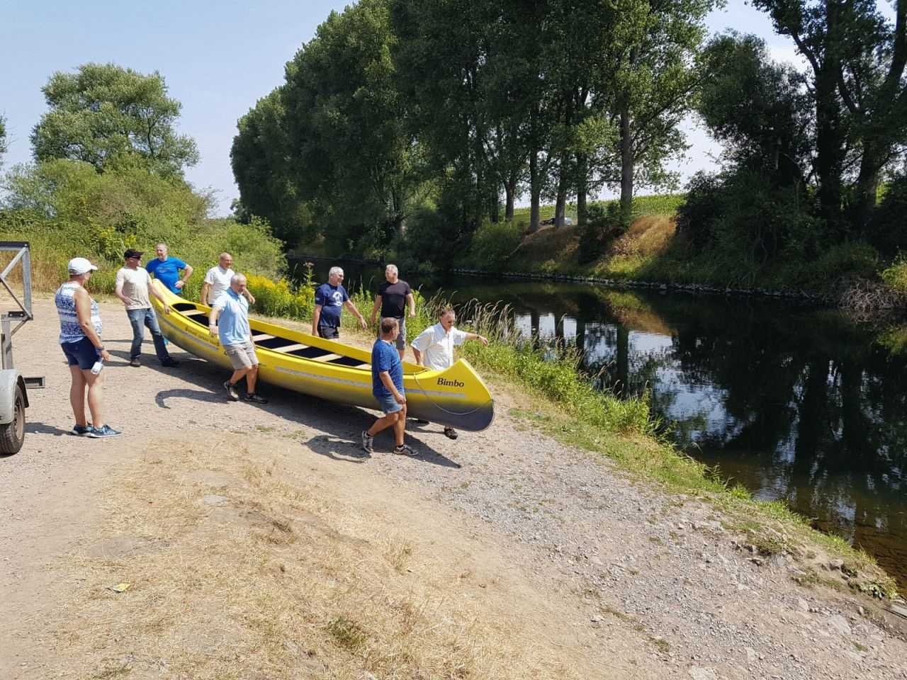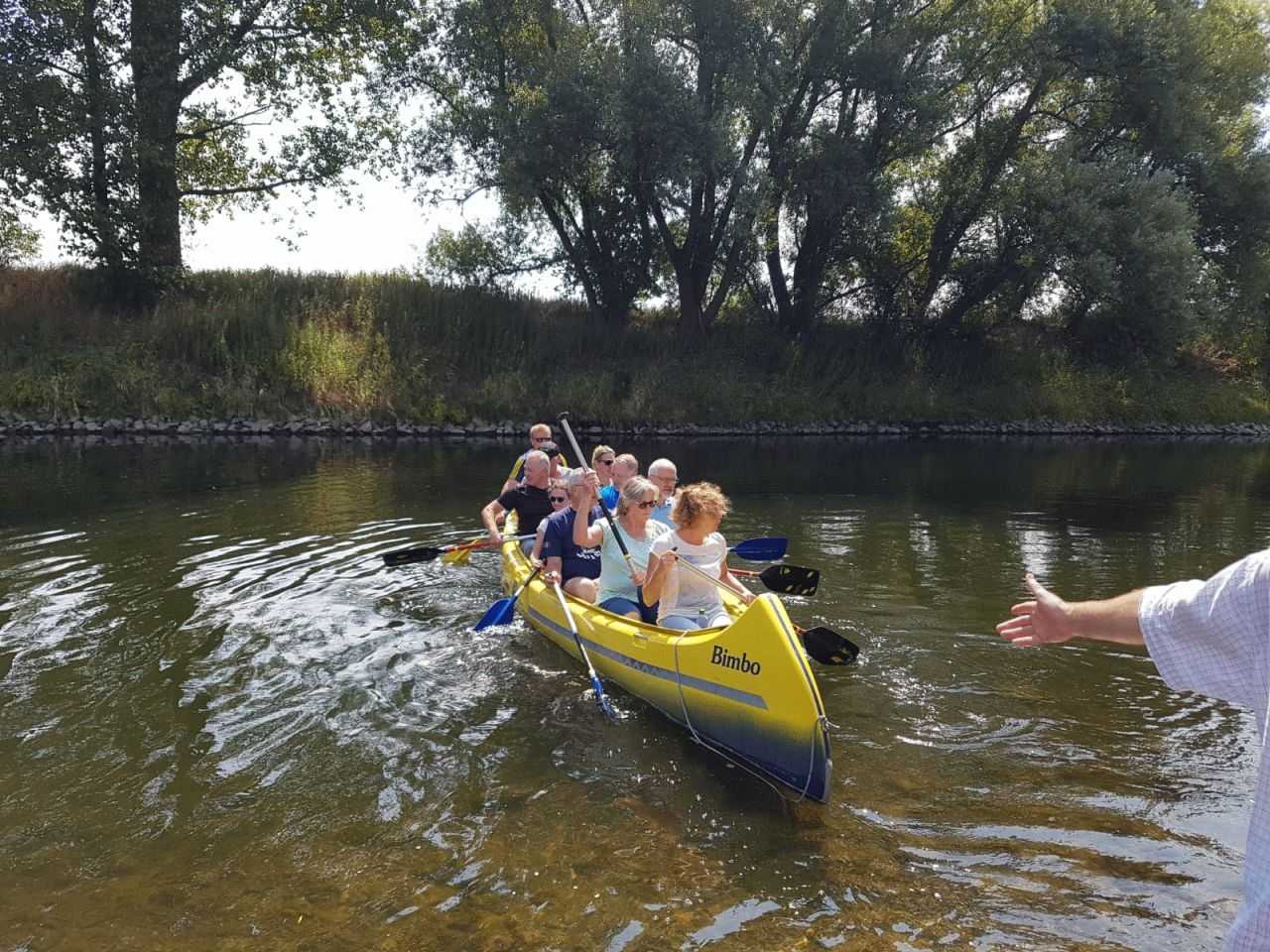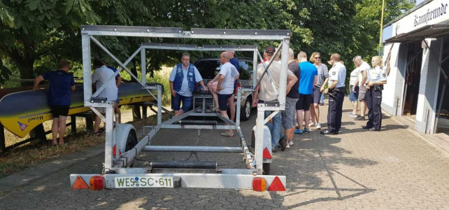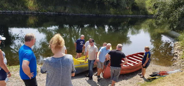 Mit mehreren PKW, einem Anhänger und zwei Kanus ging es in Richtung Hünxe. Ziel war die Dinslakener Straße, dort wurden die Kanus zu Wasser gelassen. Beide Kanus hatten eine Kapazität von 10 Personen und waren voll besetzt. Die Lippe talwärts ging es zurück in Richtung Wesel. Die Fahrt führte durch die Lippeauen und faszinierte durch eine wunderschöne Landschaft.