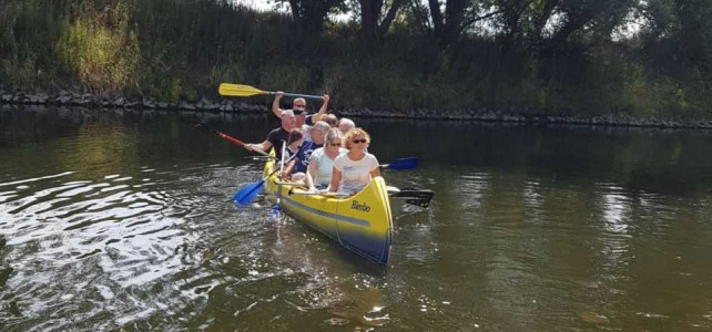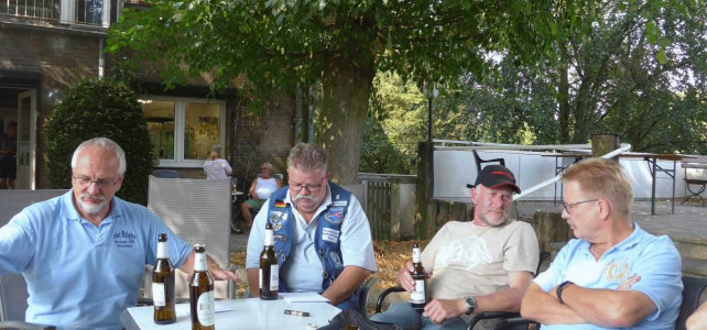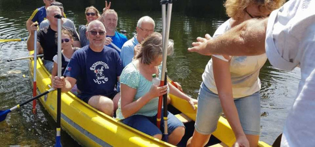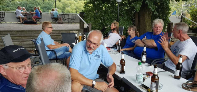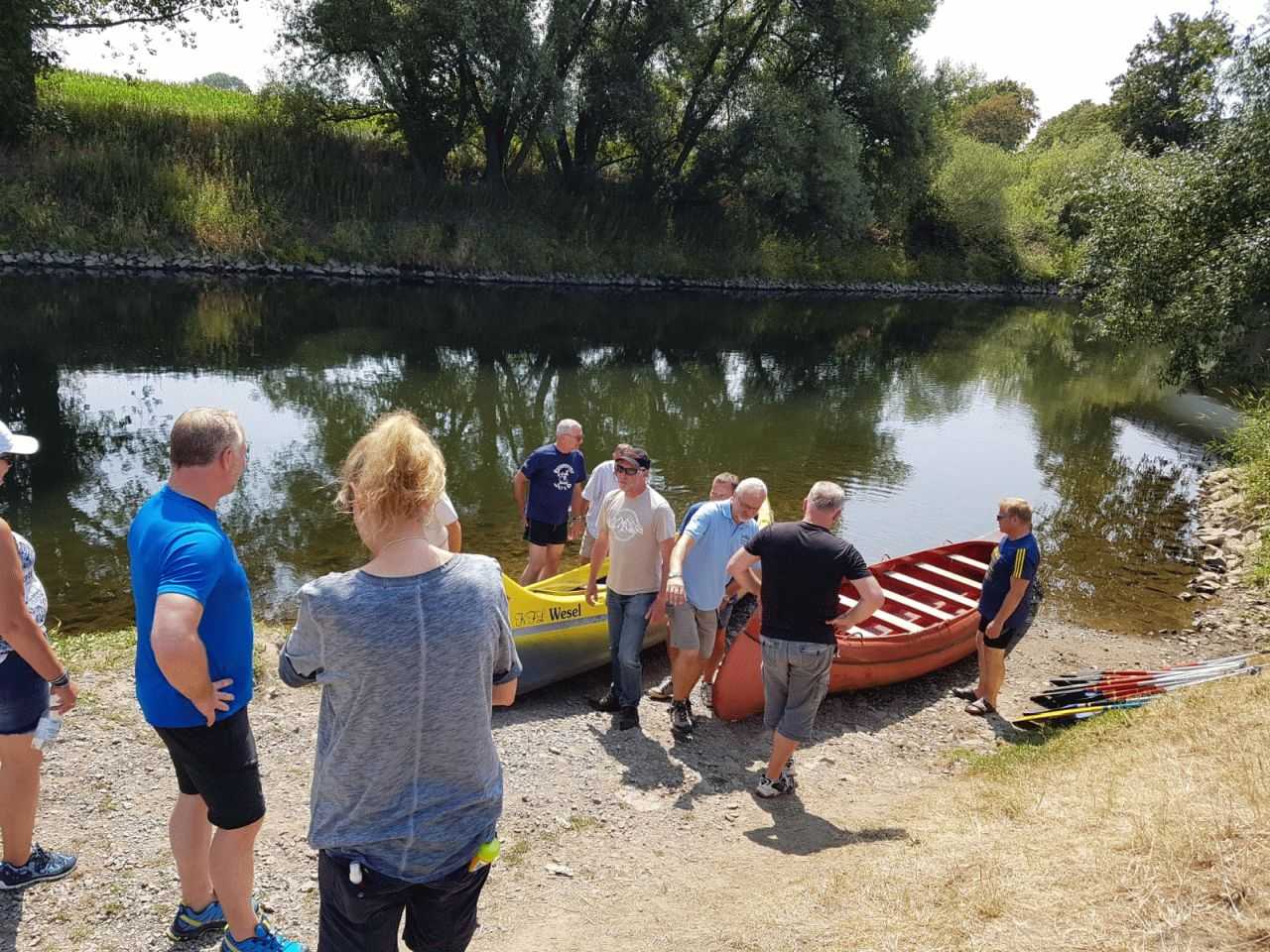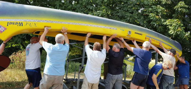 Am 21.07.2018 war es dann soweit. Gegen 10:00 h trafen wir uns auf dem Gelände des Kanuverbandes NRW in Wesel am Lippehafen. Landschaftlich wunderbar gelegen mit einem schönen Haus und toller Terrasse. Das Wetter meinte es auch gut mit uns. Nach einem guten und umfangreichen Frühstück ging es dann zum eigentlichen Tagesprogramm. Bucki war der Meinung, dass alte Biker auch mal ihre Knochen bewegen sollten und hatte deshalb eine Kanutour über die Lippe organisiert.